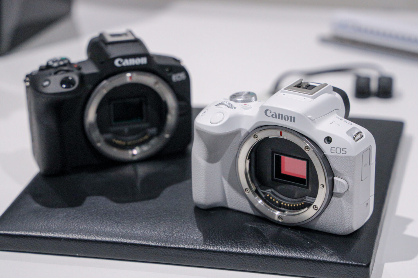 EOS R50のカラーバリエーションはホワイトとブラックの2色展開。前段でも触れましたが、キヤノンの一眼レフにおいて長期にわたり販売されているKissシリーズを彷彿とさせるカラーリングとなっています。