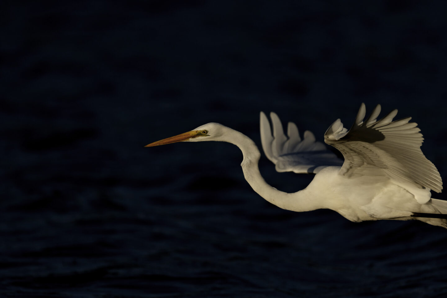 ダイサギにピントを合せて、飛び上がった瞬間にシャッターを押し高速連写40コマで対応する。本来ならばタイムラグと瞬発力が遅れた場合、フレームから顔がはみ出したシーンからの連写になるが、プリ連続撮影ならシャッターを押す前から記録しているのであとから気に入ったものを選べばいい。