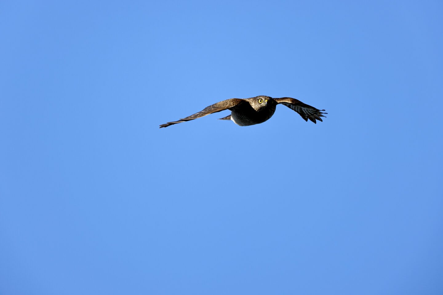 展望台でタカの渡りを撮影していると1羽のハイタカがこちらに向かってきた。頭上を越えるシーンが70%、横が20%、正面は10%の割合で滅多にない。こんな時もR6 Mark IIIはファインダーの中から外さなければAFトラッキングがピントを合わせ続けてくれた。