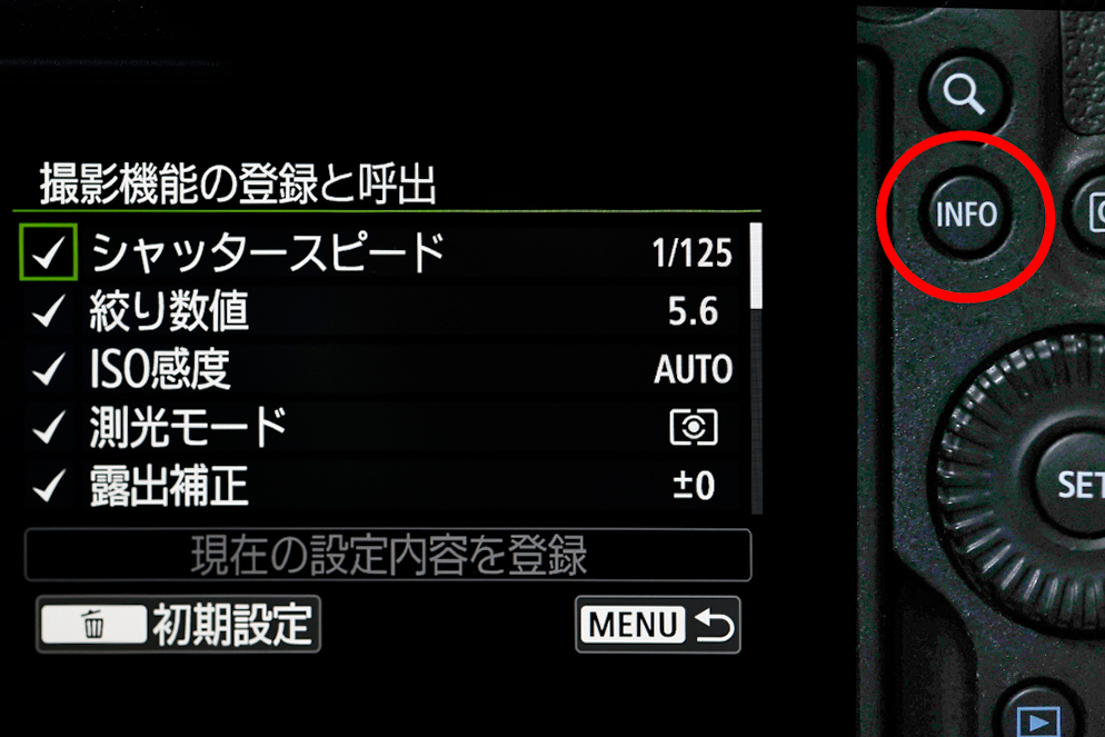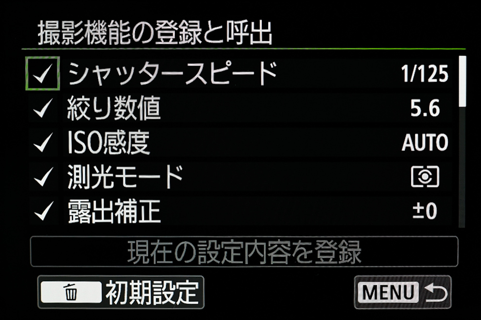 通常撮影が高感度・高ISOだった場合、「呼び出し」に低感度・低ISO設定します。