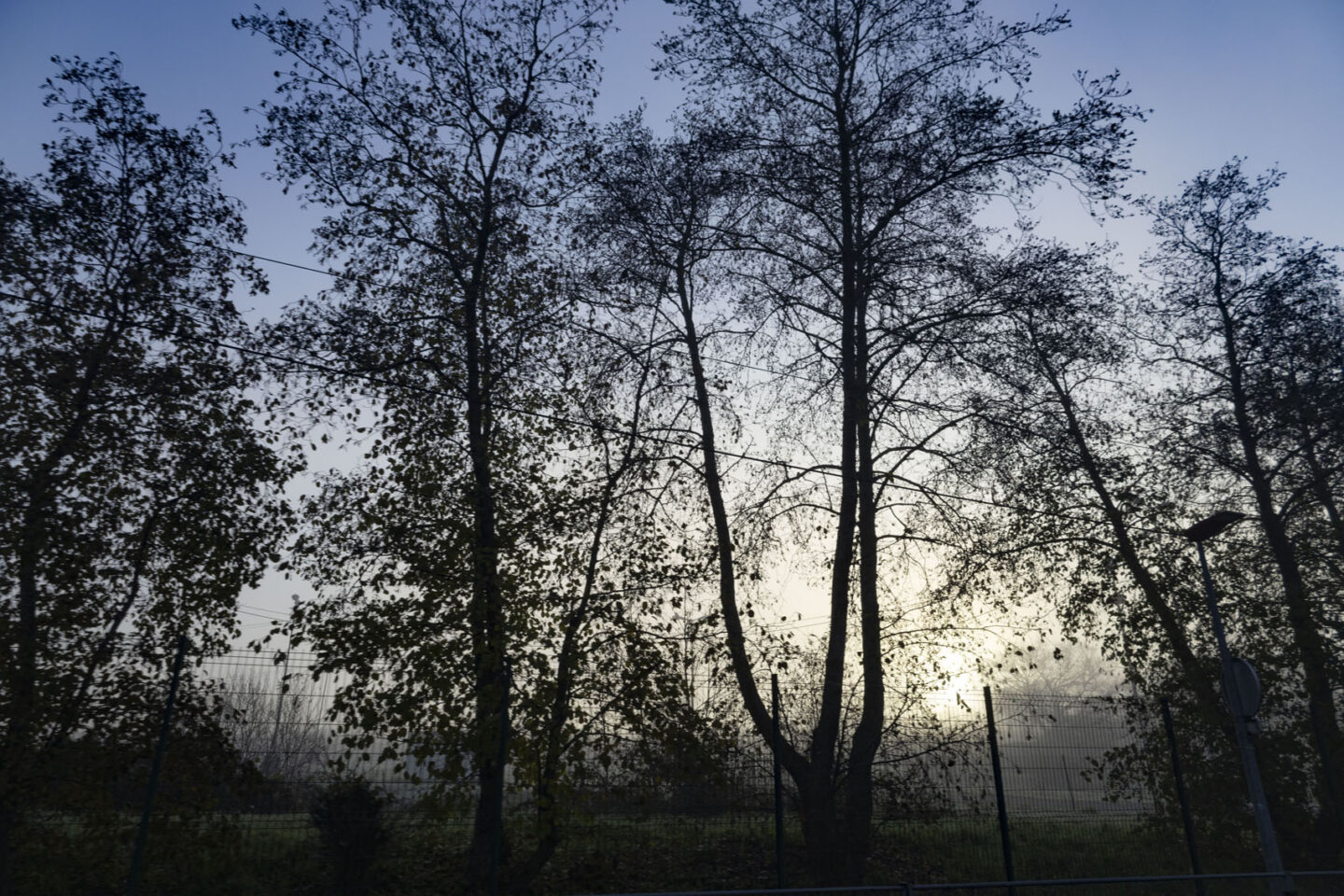 朝はお天気が悪いと9時頃にならないと陽が出ません。陽に照らされると濡れた土が霧になり幻想的な風景が見られます。深呼吸をすると、とっても冷たい空気を肺に入れてスキッと目覚めます。この木々達も同じように深呼吸をしているようです。