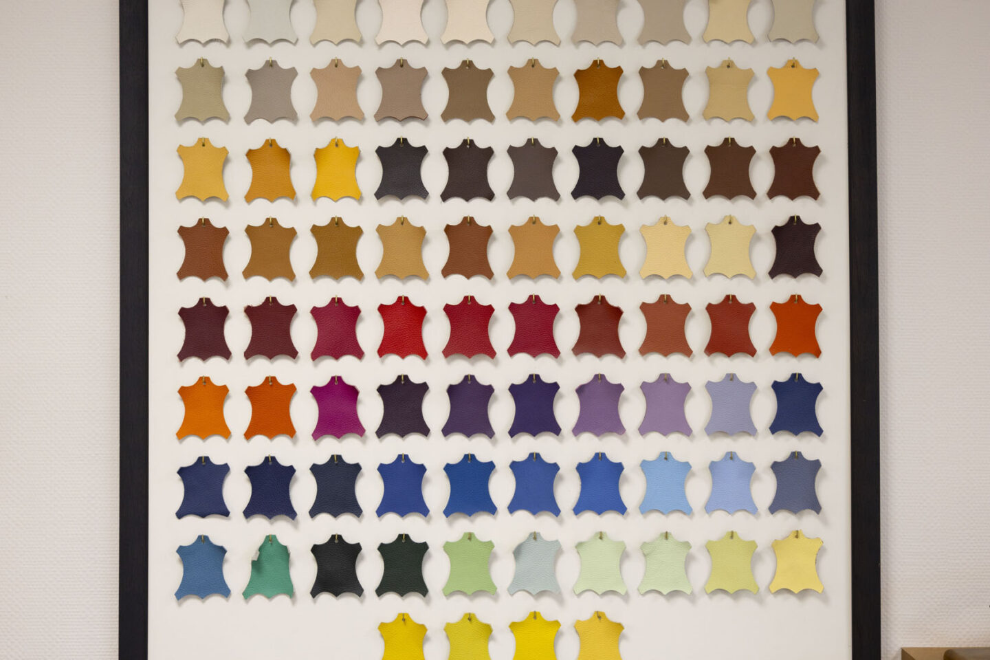 これは革を使った椅子の張り替えをしてくれる工房に行った時に、サンプルで飾ってあったもの。
