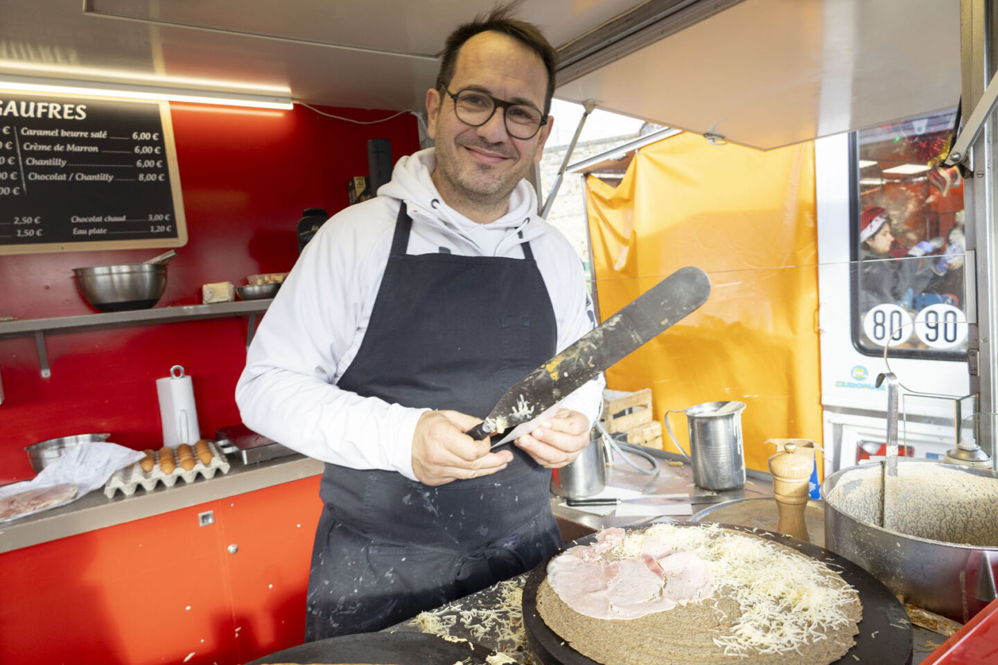 ルマンのクリスマスマルシェに行った時。教会の見学に行ったり古い街並みを見たり夕飯の買い出しをしていたら、少しお腹が減ったので蕎麦粉のクレープを食べた時に撮影させてもらったカットです。フードトラックだからキッチンがめちゃくちゃ高いのだけど、R8はバリアングル式なのでモニターの向きを変えると両腕を伸ばした高さまで撮影することができるので、焼いている手元まで入れて撮影することができました。また食べたいな。