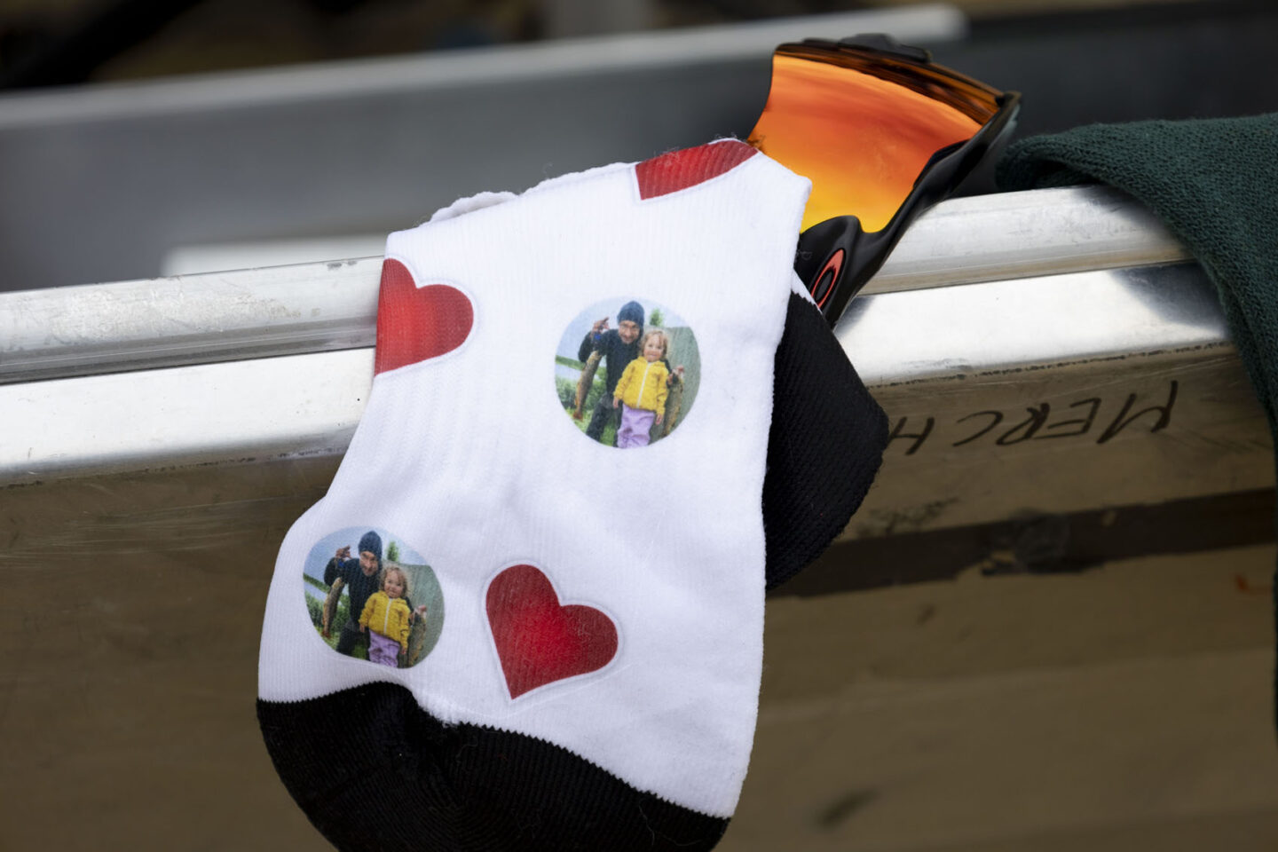 丸の中をよーーーく見てください。小さな子供と男性が写っていて、彼はこれからアフリカのレースに向かうライダー。こんなお守り靴下があれば頑張るしかないですよね。写真ってすごいパワーがあるし、やっぱりいいなって思います。