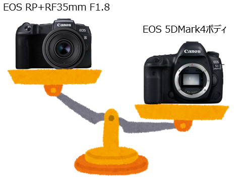 とても軽いですよね。考えてみれば500mlのペットボトル飲料よりも軽いです。またキットレンズの「RF35mm F1.8 MACRO IS STM」と組み合わせても約790g。なんと同じキヤノンでフルサイズセンサーを搭載した一眼レフ「EOS 5D MarkIV」のボディのみよりも軽いそうです。
