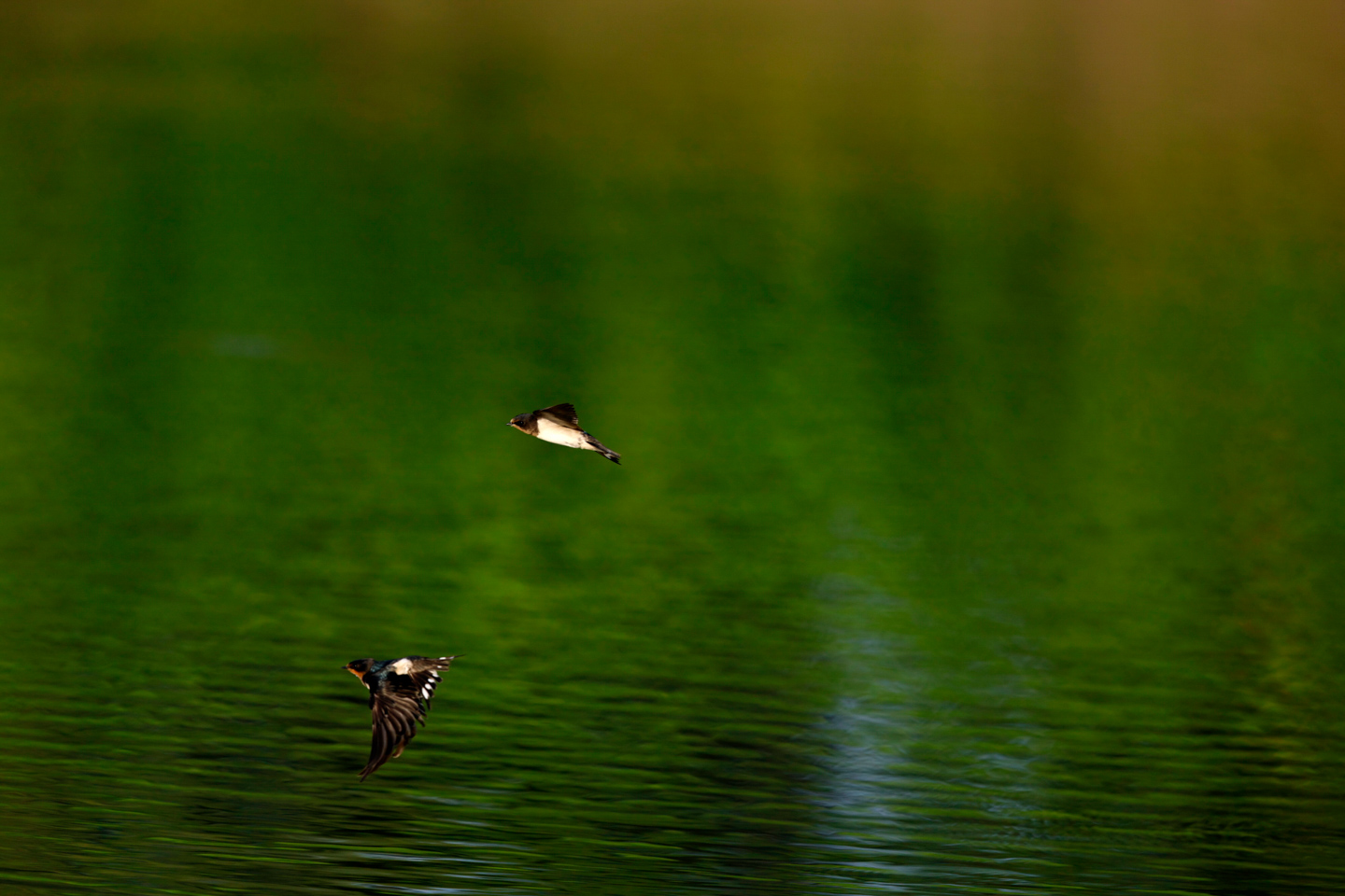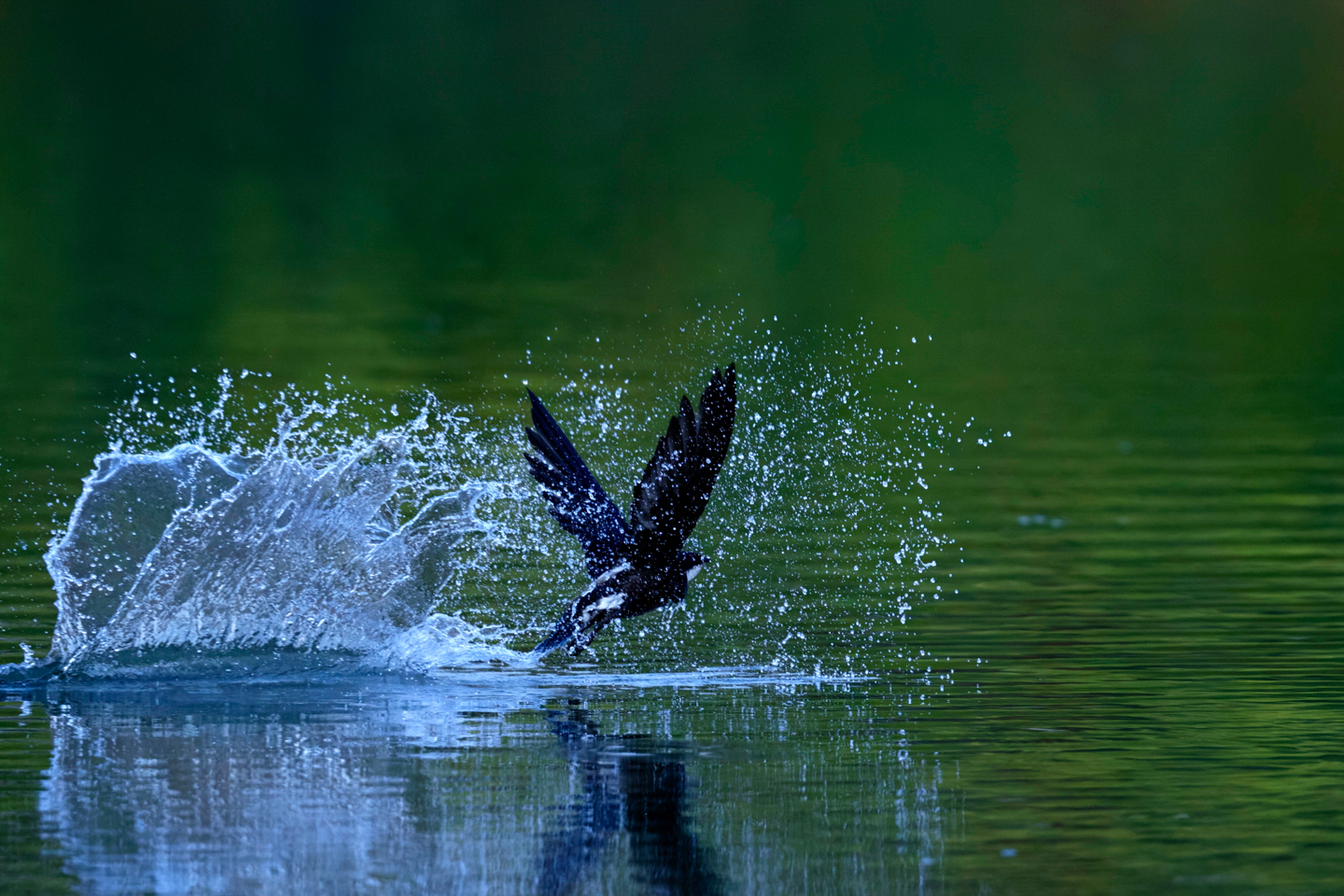 水面に浮かんでいる個体を狙っていると、突然水中から飛び出してきたもう1羽と喧嘩になった!ピントはカメラに任せてとにかくファインダーから外さないことに全集中。1/2000秒の高速シャッター&高速連写約30コマ/秒とAFの追従性が進化したことでこのカットを撮ることができた。