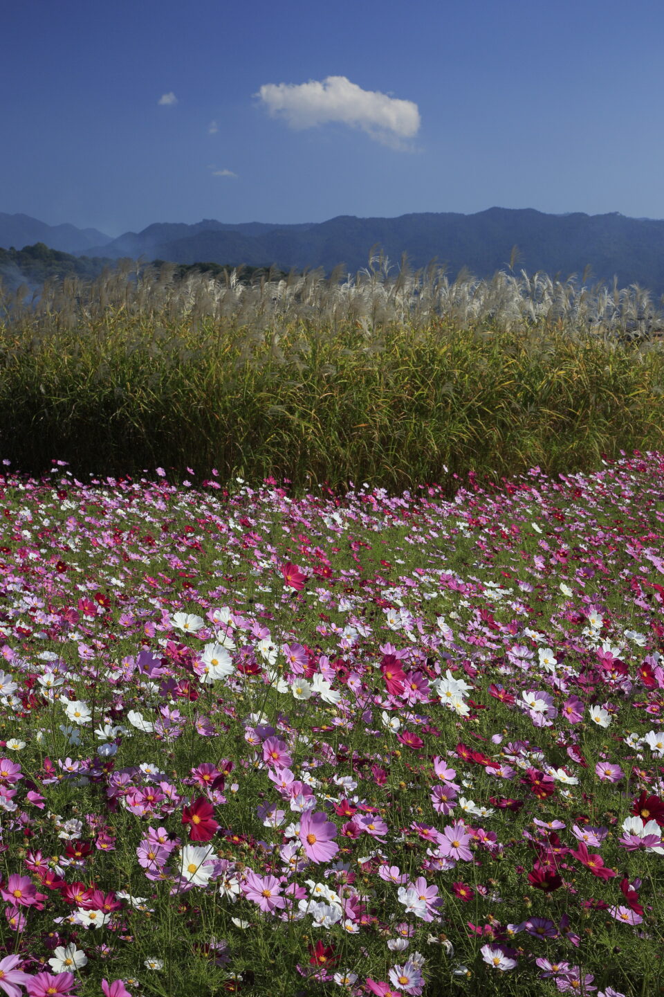 春から追いかけてきた季節の花々も、ファインダーの向こうでいつしか秋の色に染まりはじめます。陽射しがやわらぎ、風が少し冷たくなる頃、コスモスは静かに、しかし確かにその存在感を放ちます。群れ咲く華やぎ、一輪に宿る儚さ、風に揺れるたおやかな姿──そのすべてが、秋という季節の移ろいを語りかけてくるようです。広角、標準、望遠、マクロ。どのレンズで向き合っても、コスモスはその表情を惜しみなく見せてくれます。