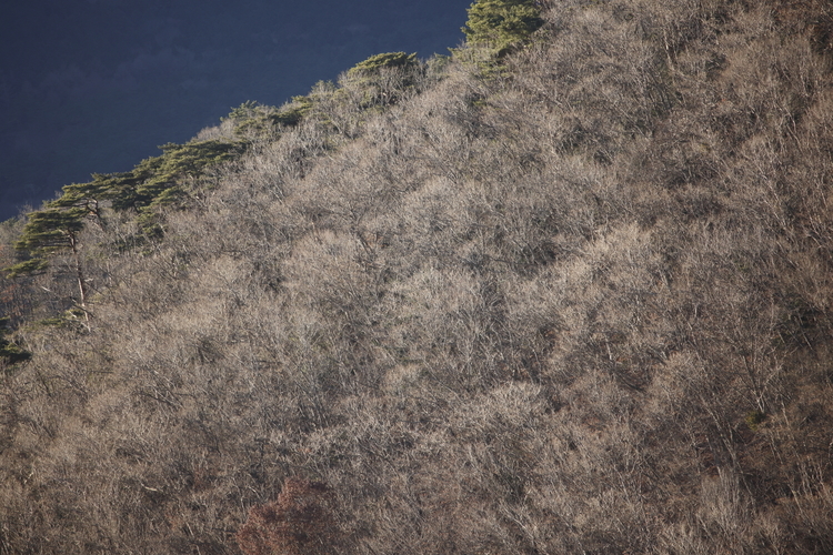 上の写真の翌日、12月半ばの14:30頃の撮影です。大沢崩れ周辺の山肌がカリッとシャープに描写されています。こちらは絞りはF11、焦点距離400mmで撮影した一枚。色再現やコントラストは、Lレンズである「RF100-500mm F4.5-7.1 L IS USM」に軍配があがりますが、その差にどれだけの人が気づくかはわからないレベルです。