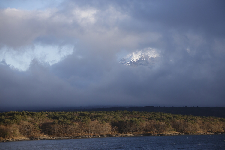 同じ場所で撮影した2枚の写真をご覧ください。まず、焦点距離100mmで撮影した雲に覆われた富士山。絞りはF8、手持ち撮影。400mmの写真と比べるとずいぶん広く感じます。