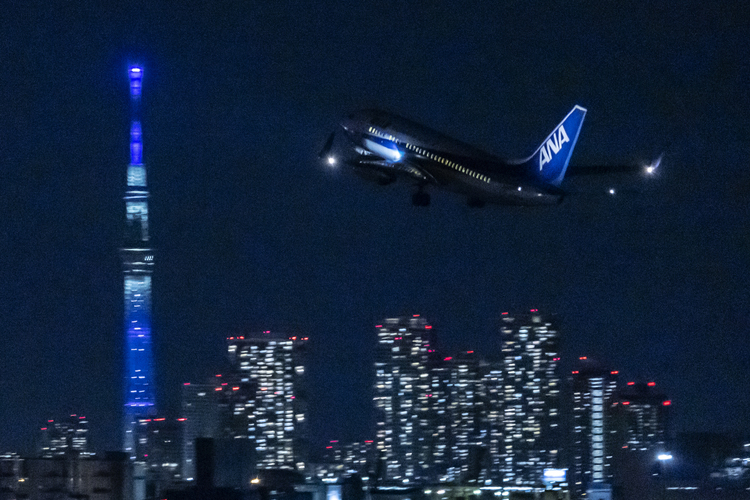 飛行機撮影など動きモノの撮影で重要視されるのがオートフォーカス(以下AF)の合焦速度ですが、EOS R5やR6とこのレンズの組み合わせではかなり高速でAFが合焦。シャッターボタンを半押しにした瞬間、合焦していると感じるほど瞬時にフォーカスが合います。作例のような夜間での合焦速度も問題ありません。夜間はAF枠のチョイスに若干気を使う部分もありますが、コントラストのある部分などをしっかり狙うことにより日中と変わらぬ素早い合焦を実現してくれます。
