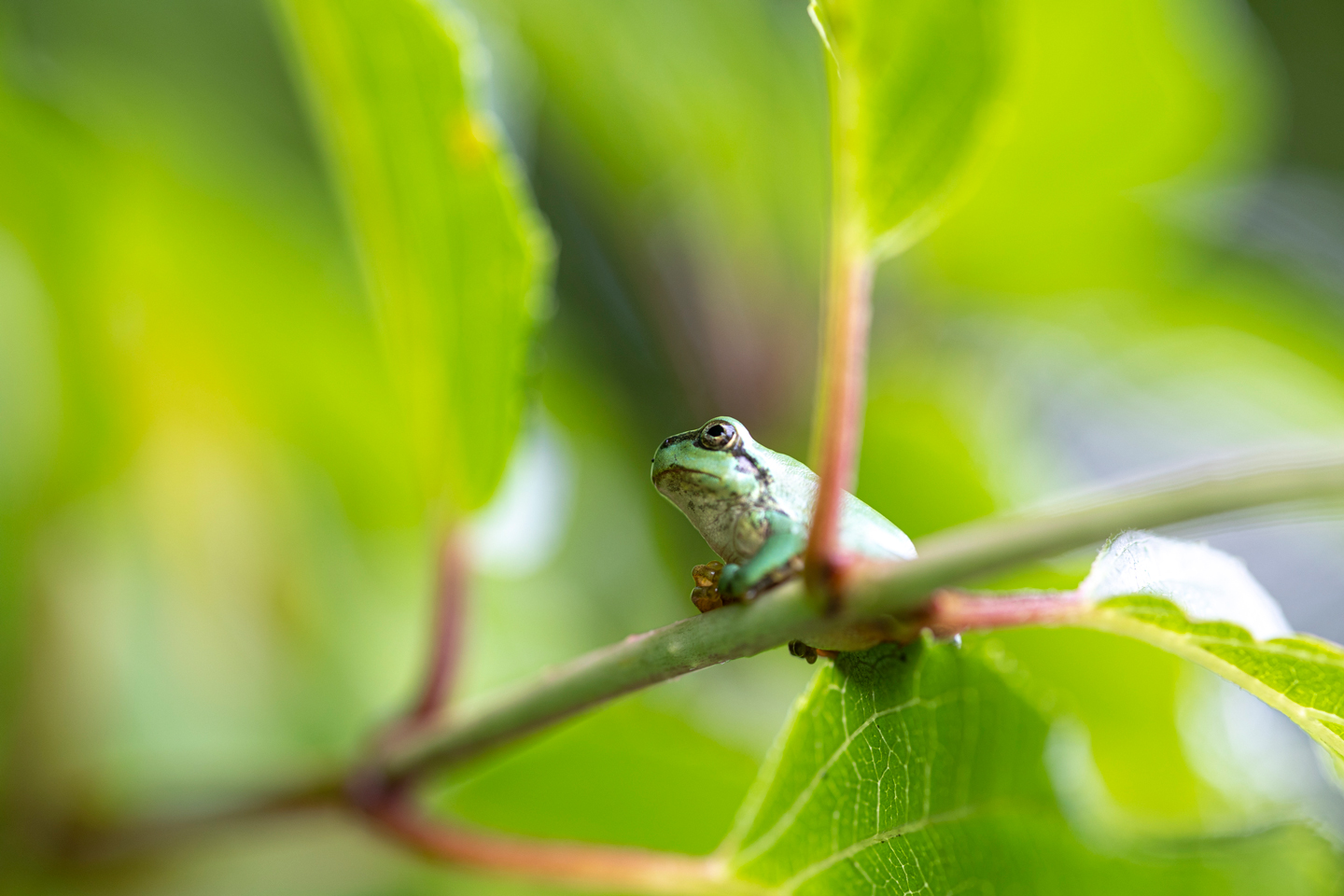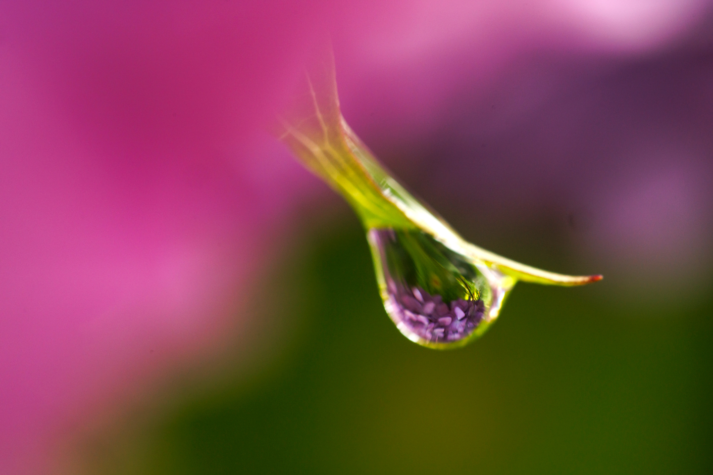 マクロレンズ撮影では被写体が小さいため近づいて撮影することが多く、三脚を立てることが難しかったり、わずかな風や撮影者自身の手ブレによりピントが合わないことがよくあります。RF100mm F2.8 L MACRO IS USM は最大撮影倍率 1.4 倍なので被写体が大きく写る分、被写界深度はとても浅く少しのブレでピントが合いづらく、写真のように複数の水滴にピントを合わせる場合は、少し絞って撮影しないとボケている部分が多すぎてしまうことも。そんな時は少し絞り、脇を締めしっかりとカメラを持ち連射で撮影するのがオススメです。