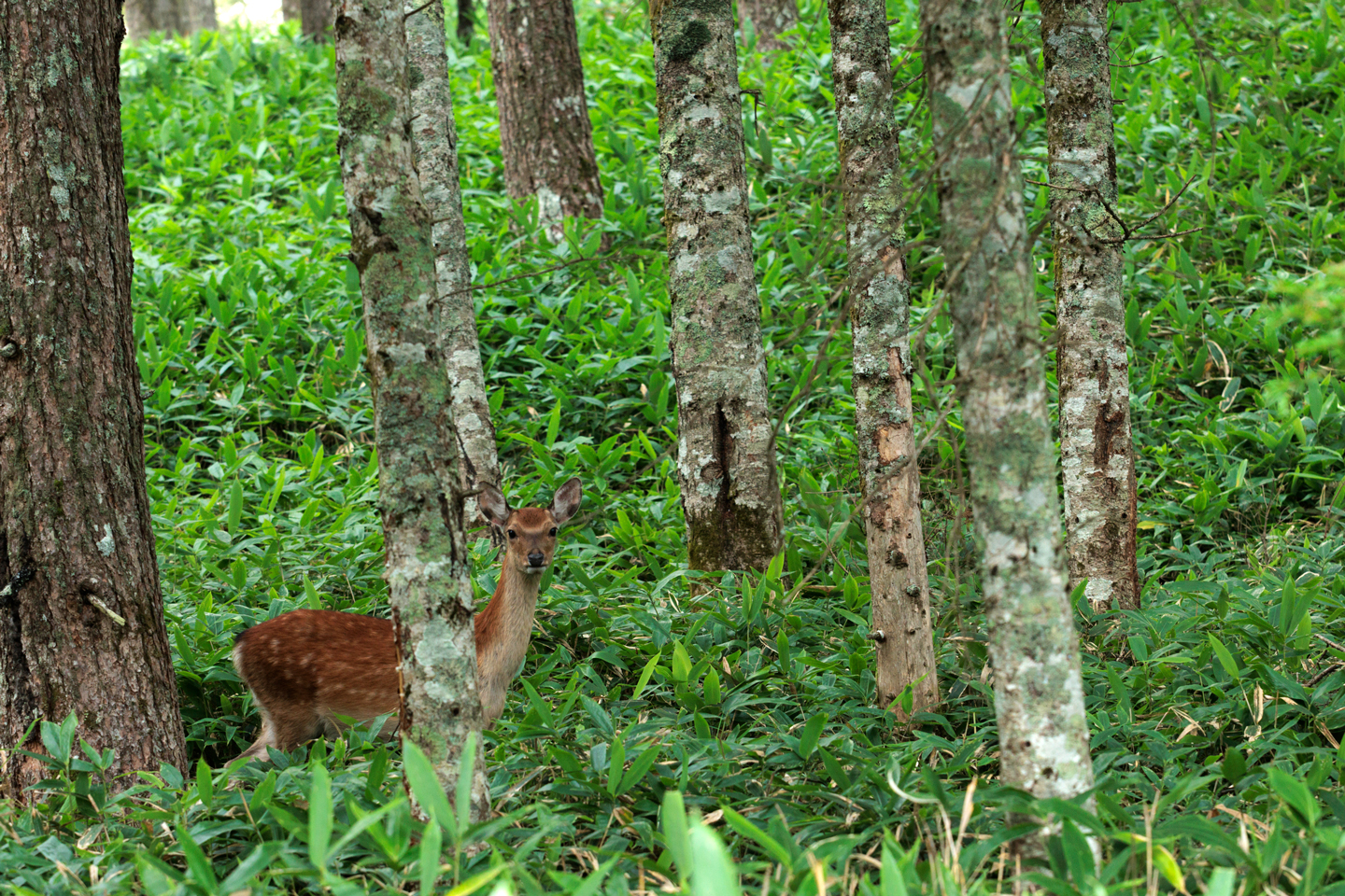 100mm の中望遠レンズとしても使用できるので、風景の一部を切り取る使い方もできます。開放絞りから解像力が高くとてもシャープで鮮明な写りをするので、単焦点レンズとしてもどんどん使いたくなるレンズです。夕暮れ時、山の中で出会った鹿にも瞬時にAFが合い、強力な手ブレ補正のおかげでブレることなく手持ちで撮影することができました。