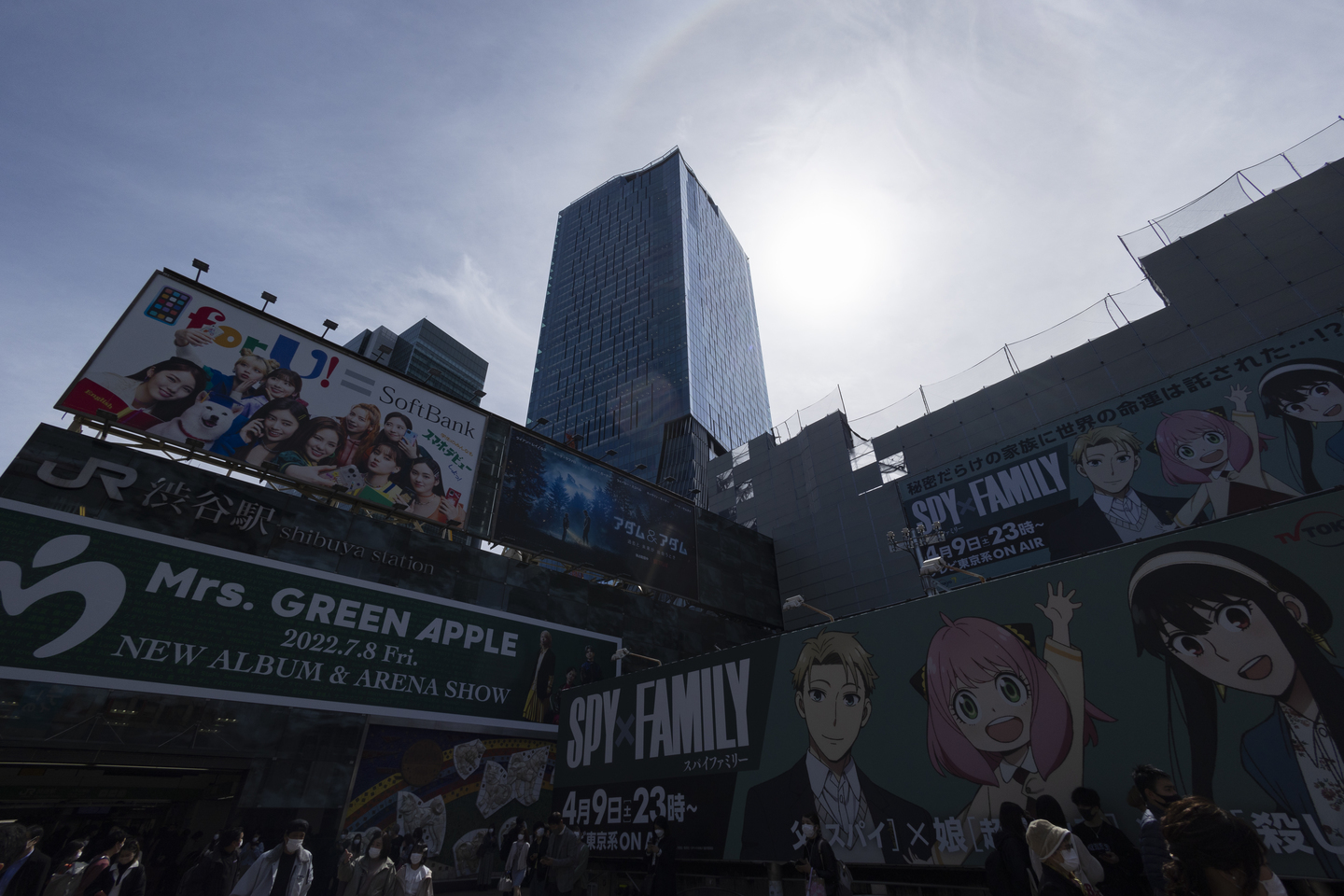 巨大な看板で埋め尽くされた渋谷駅前。下から見上げ、思いっきり逆光状態で撮影。フレアは若干確認でき、よく見るとゴーストも発生してはいますが、ほとんど邪魔にならないレベルです。