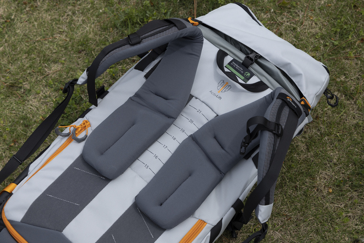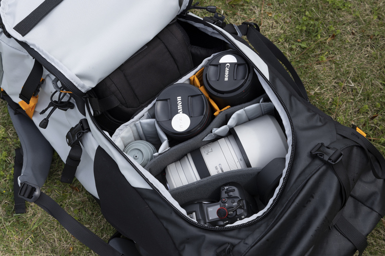 70リットルの大容量スペースと身体に合わせてショルダーストラップの位置の調整ができるのと、ウエストベルトが本格的な登山バッグのように頑丈で荷重を分散してくれるため、長距離走行の後の肩がとっても楽。内部には取り外しできるインナーバッグがあり、撮影に合わせて自由にカスタムできるのもお気に入りポイントです。バッグ最下部のエクストラの荷室には雨具やテントがすっぽり入るため、山でよく撮るよ、テントや食料も持っていくよ、という方にお勧めのバックパックです。