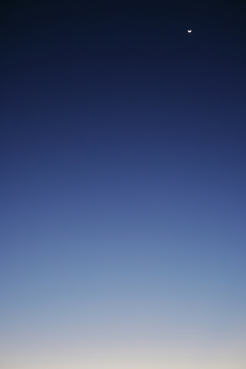 夜明けの頃、月にAFでピントを合わせて手持ち撮影。EOS R5のAF領域はスペック上は縦100%、横90%(一点AF等、任意選択時)ですが、体感としてはほぼ100%AFが合う感覚です。開放F2+広いAF領域で、今までのセオリーから外れた、新しい構図にチャレンジしてみるのはいかがでしょうか。