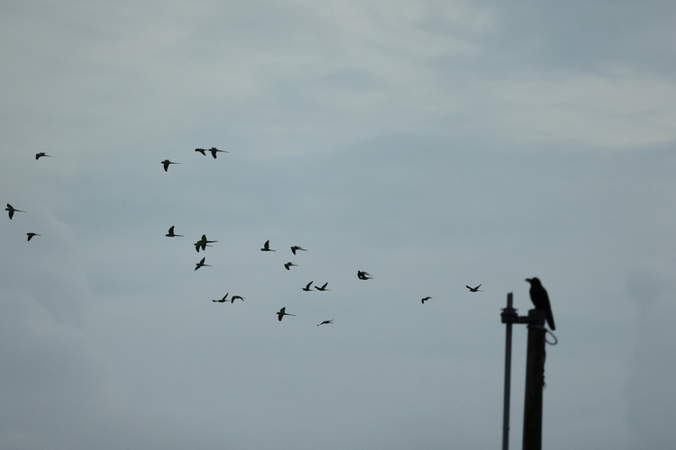 鳥の撮影では、できるだけ主役を画面に大きく捉えがちですが、周りの状況を入れることでスナップ的な面白さが加わります。何が被写体でも自由に撮るのが一番です。ジャンルに縛られない、時にはルールを無視することで、自分らしい写真が撮ることができると思います。