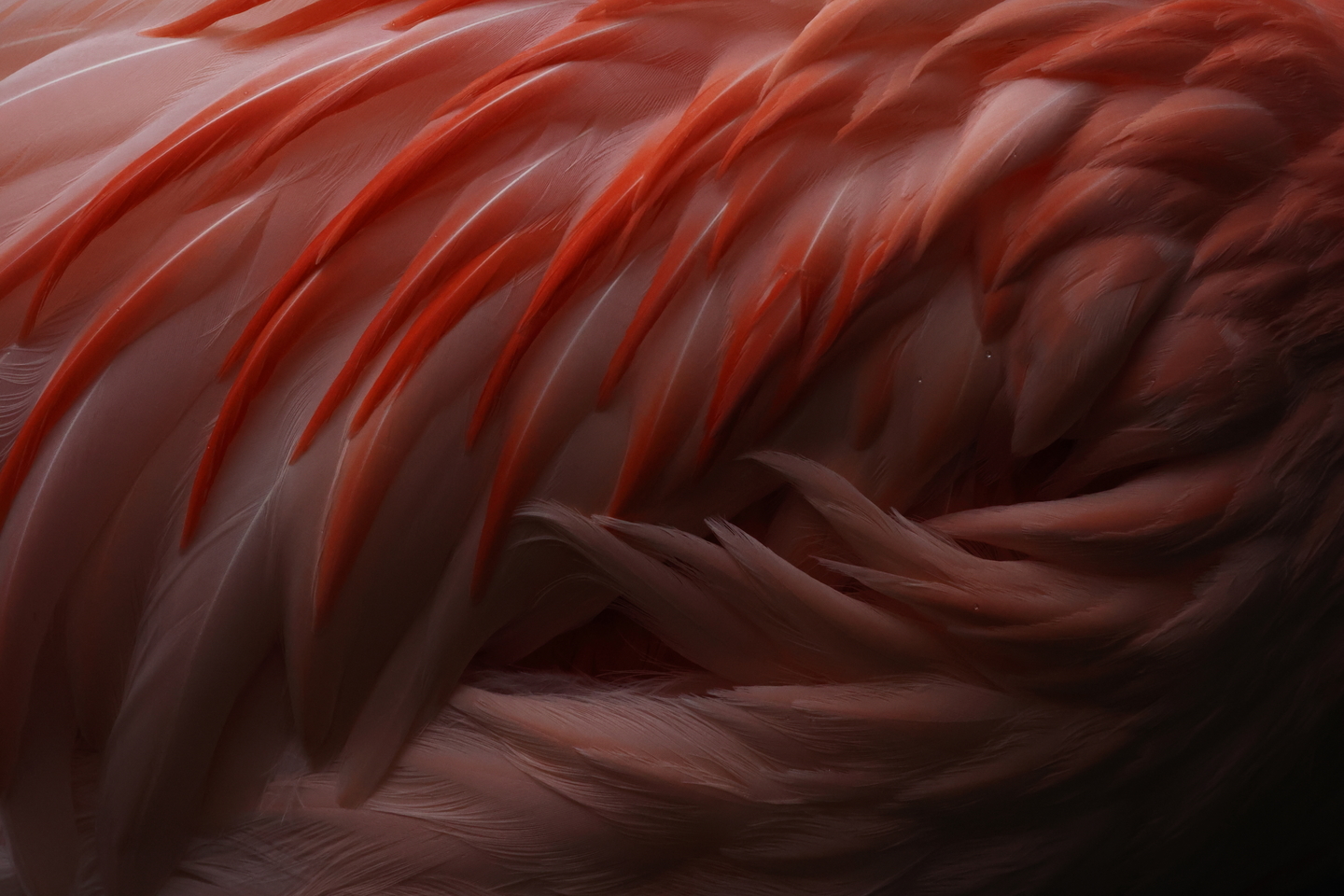 超望遠レンズは動物園でも大活躍です。檻の向こうにいる動物を大きく写せます。これはフラミンゴの羽の部分だけを切り取りました。ここまで寄れると、今まで見えてなかったものが見えてきてワクワクします。