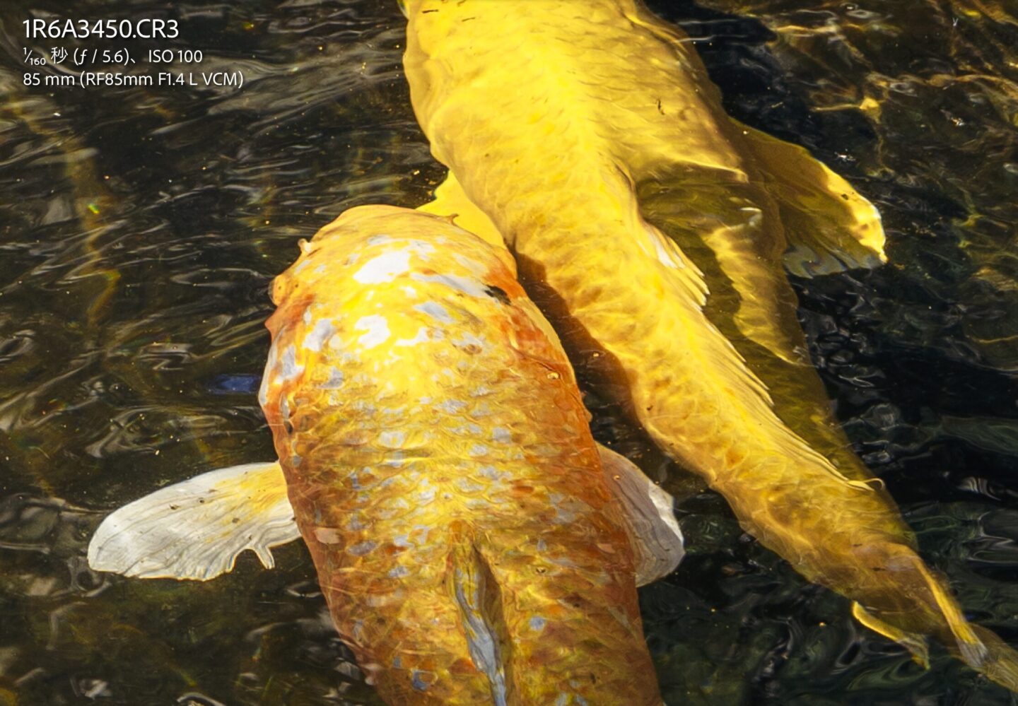 AFは非常に速いです。ライブ中のアーティストでもバンバン合うのですが、ここで写真を使うのは難しいので鯉の写真を撮って見ました。水面の反射などに惑わされることなくAFでしっかり合わせてくれます。ポートレートのように被写体が明確なシーンではその性能はさらに顕著で、瞳AFと合わせて撮影をサポートしてくれます。このAFのおかげでとても扱いやすくストレスフリーに撮影可能です。