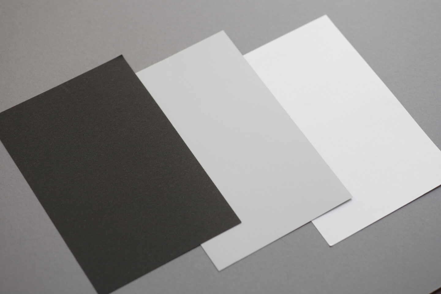 黒、グレー、白──この3色の紙をそれぞれ画面いっぱいに撮影すると、どれも似たようなグレーに写ってしまうことがあります。これは、カメラに内蔵された露出計が「中間トーンのグレー(18%グレー)」に写るように設計されているためです。