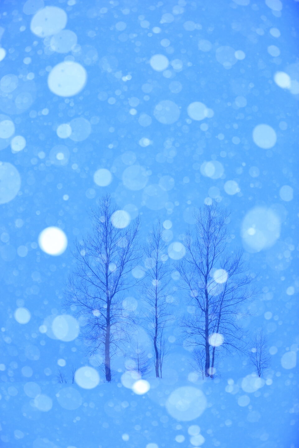降る雪を写真に収めるとき、画面内に暗い部分を取り入れることで、雪の粒がよりくっきりと浮かび上がります。そして、シャッター速度の設定によって、その印象は大きく変化します。