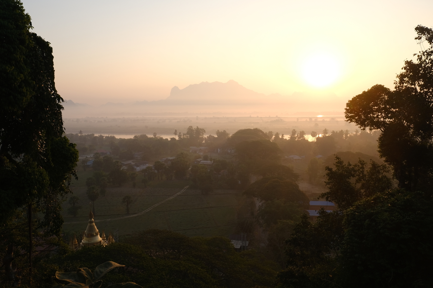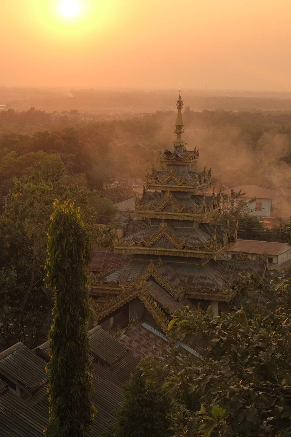 ヤンゴン近くのお寺からの夕日。逆光の厳しい条件でしたが手前も黒つぶれせず太陽周りのグラデーションも綺麗に表現することができました。近くで晩御飯の準備をしている煙が辺りに漂い、幻想的でした。