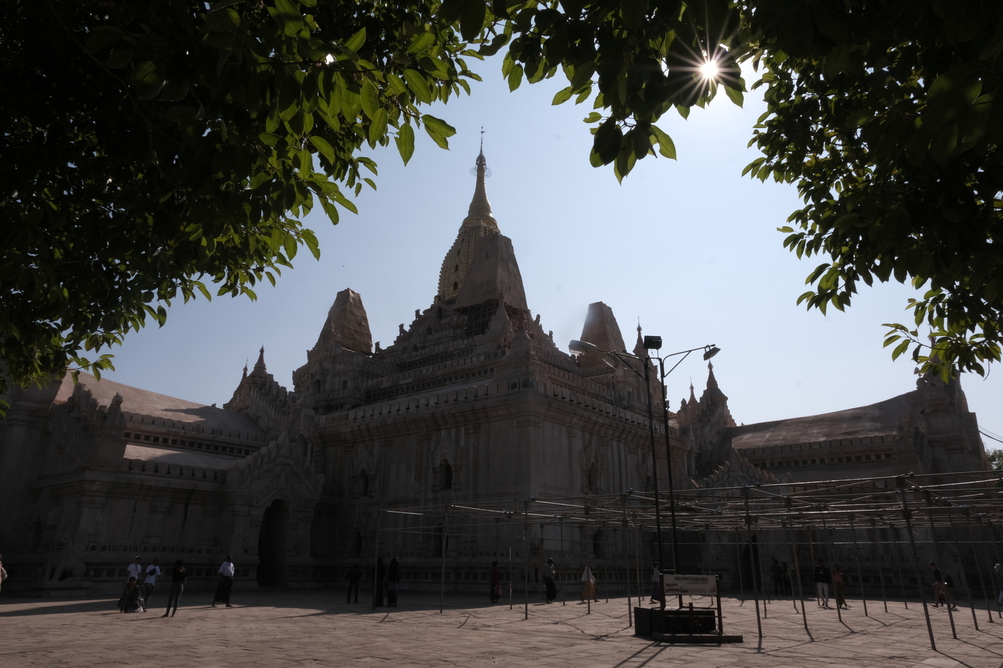 ミャンマーで2019年に世界遺産登録されたバガン。その中でも最も重要な位置づけの寺院のひとつであるアーナンダー寺院。16mmの広角を生かして手前の木々の中から覗くような構図にしてみました。絞りを絞る(F値をあげる)ことによって太陽の光芒を出してみましたがこのレンズは絞り羽が9枚なので計18本の光の筋が現れました。