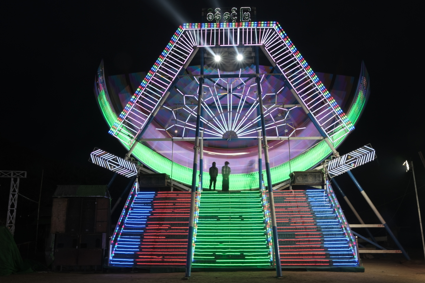 2020年の新年を迎えたバガンでは、早々に始まるアーナンダー祭りの屋台がそこかしこに立ちならんでいました。感度をあげて撮影することもできるのですがなるべく画質を落としたくないのでスローシャッターの1/4秒で撮影。広角側でしっかり構えて撮るとほとんどがブレなく撮影できました。