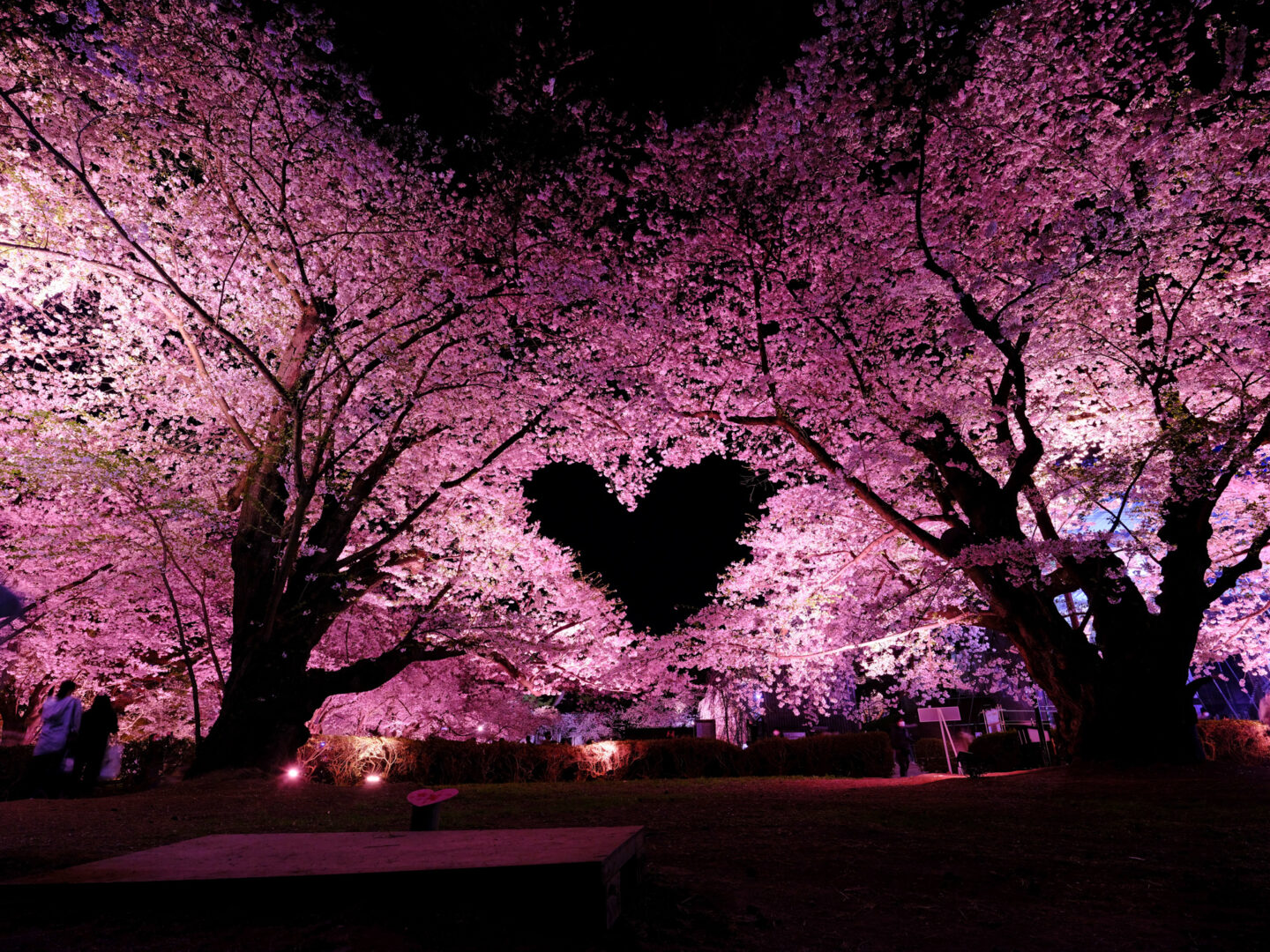 弘前城の桜並木で最近話題になっているのがハートスポット。ある角度から見るとハート型の空間が現れるスポットです。標準レンズだとハート部分のみしか見えませんが、広角レンズを使うことによって周りの雰囲気も写し込むことができました。