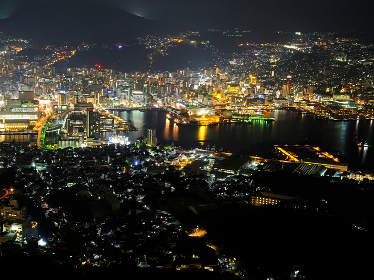 新世界三大夜景にも認定された長崎の夜景。絞り込んで撮影すると遠くの看板に書かれた文字まで読み取ることができます。