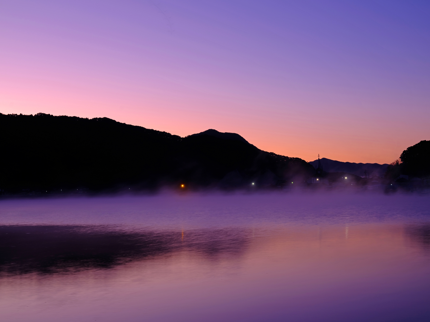 こちらも「長崎と天草地方の潜伏キリシタン関連遺産」に登録されている天草にある崎津集落です。この日の朝は冷え込み気嵐が発生し、朝4時に起きてきた甲斐がありました。夜明け前の空のグラデーションをとても諧調豊かに表現することができました。