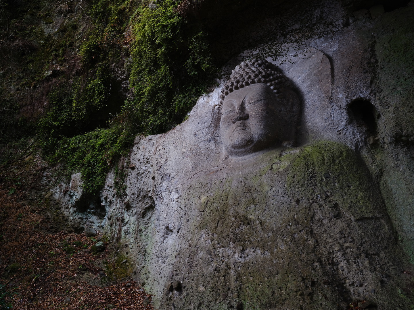 大分県の国東半島には摩崖仏が点在しています。雨上がりで濡れていたので石の表面の質感までをも捉えることができました。