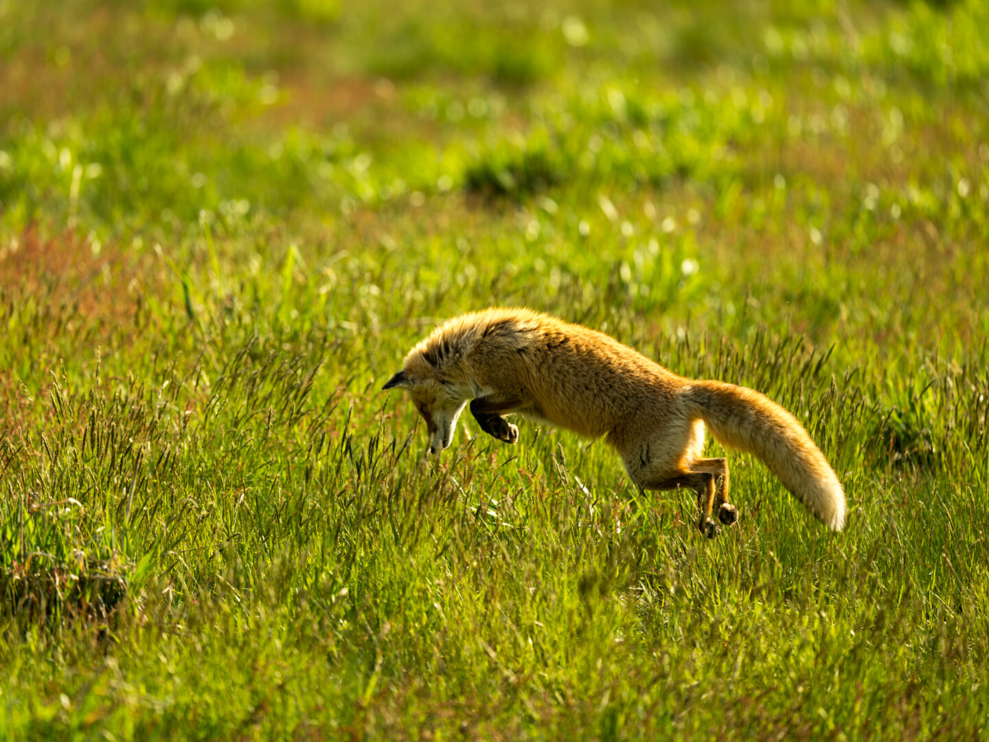 ジャンプして狩りをするキタキツネに対して、とっさの手持ち撮影にも「GF500mmF5.6 R LM OIS WR」の強力な手ブレ補正機構が素早く働いてくれました。レンズ自体も軽量ですし、これだけの超望遠でも手持ちで撮影できるのはフィールドではありがたいポイントです。
