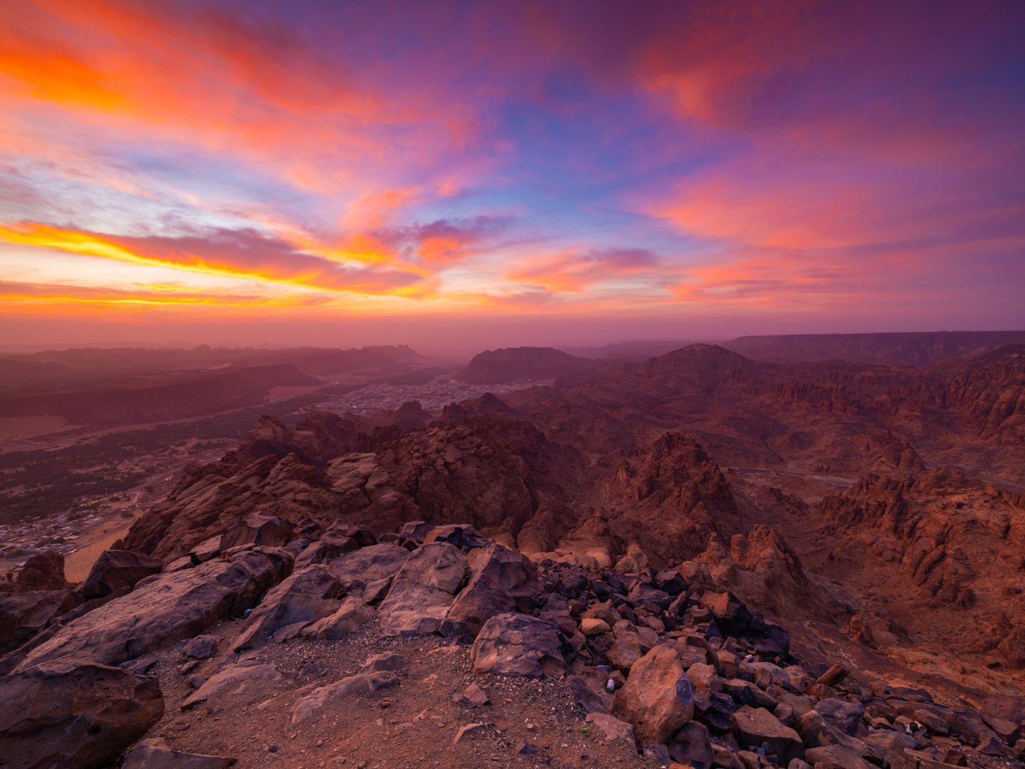アルウラ周辺には、グランドキャニオンを彷彿とさせる巨岩が乱立する荒野が広がっています。まだ観光地化が進みきっていないため、この地球離れした絶景を独り占めできるのは、今のサウジアラビアを訪れる最大の特権と言えるでしょう。