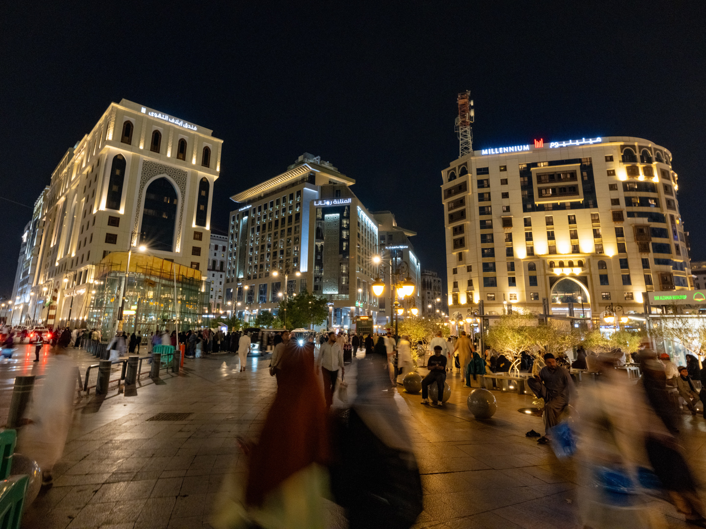 アルウラでの撮影を終え、次に向かったのはイスラム教第2の聖地「メディナ」です。アルウラからは砂漠の中を貫くハイウェイを南下し、車で約4時間の道のり。2022年まで非イスラム教徒の立ち入りが厳しく制限されていたこの街も、現在は中心部まで足を運べるようになりました。