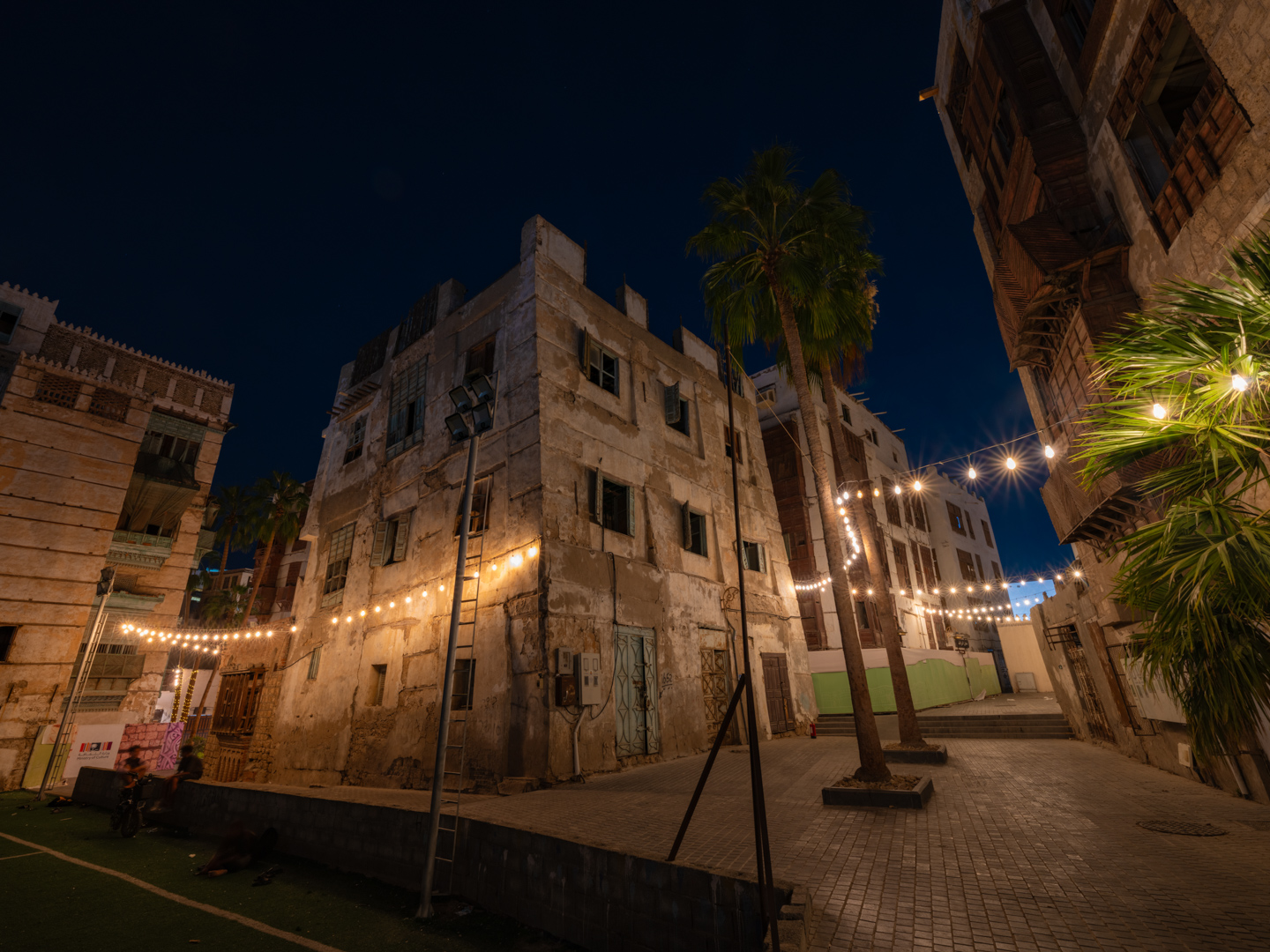 ジェッダの旧市街「アル・バラド」に一歩足を踏み入れると、数百年もの歴史を刻んだ重厚な建物が並びます。ここの建築の最大の特徴は、「ロシャン」と呼ばれる美しい木製の飾り窓です。これは、外からの視線を遮りつつ、紅海からの涼しい風を室内に取り入れるための先人の知恵。その精緻な彫刻は、まさに芸術品です。