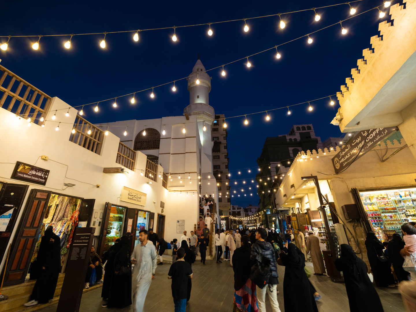 砂漠の静寂から一転、街に入ると世界中から集まった巡礼者たちの圧倒的な熱気に包まれます。進化した手ブレ補正と高感度耐性のおかげで人々の行き交うシーンを手持ちスローシャッターで切り取ることができました。