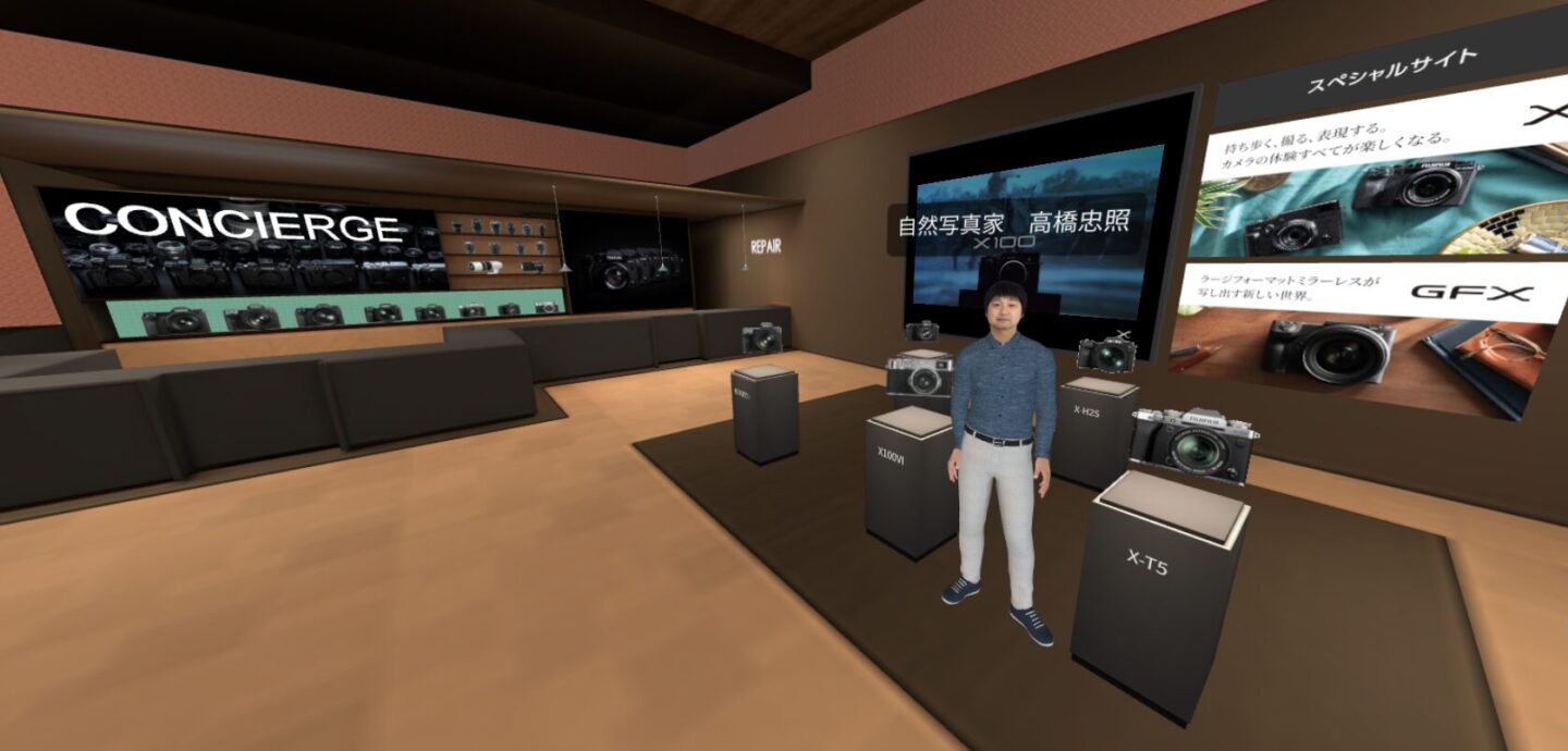X&GFX SHOWROOMではコンシェルジュのアバターとカメラ談義をしたり、ビデオ通話(※) による機材購入や修理の相談ができるのも魅力です。