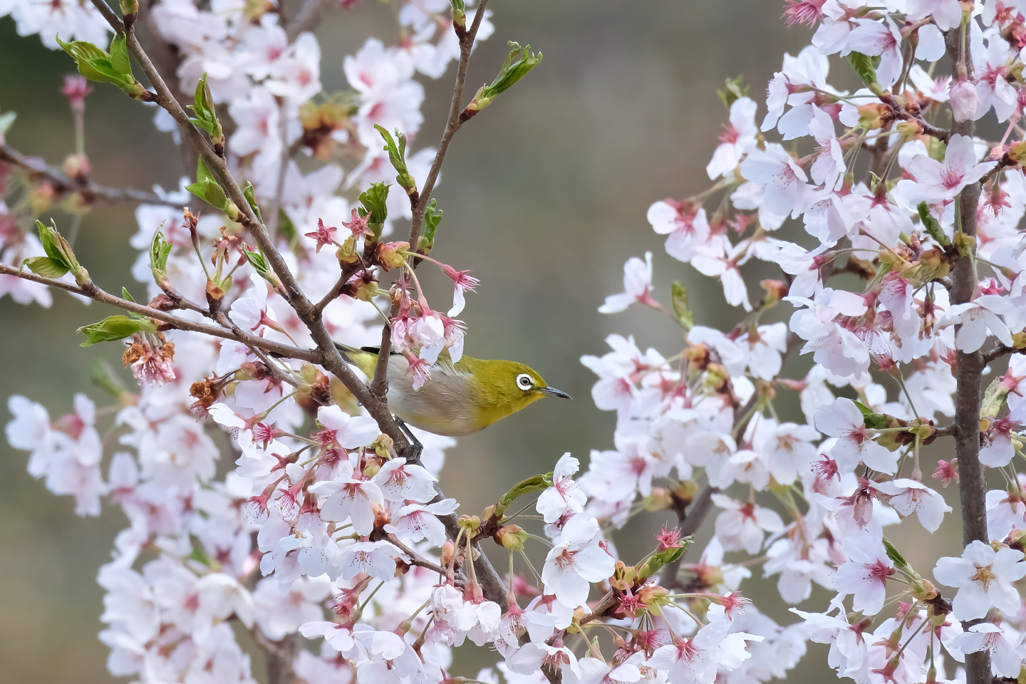 春の代表的な花は、何といっても「桜」です。桜は山間部や都市公園など、日本では比較的ポピュラーな樹木です。開花直後の花蜜やそれらに集まる虫を求めて、たくさんの野鳥が花の周りに集まります。