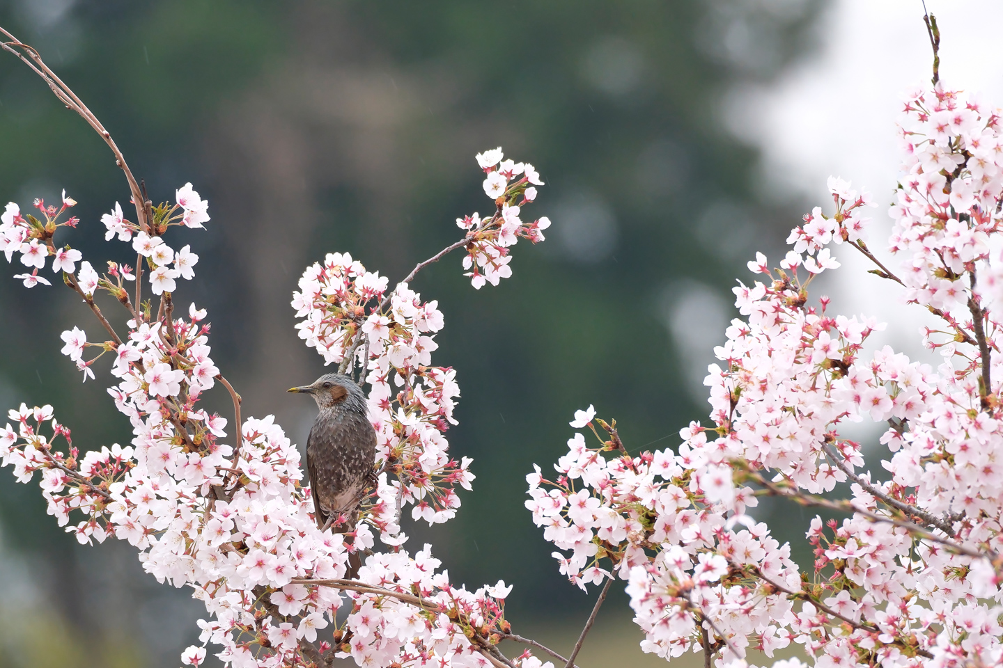 桜の木の下に花がまるごと落ちているときは、スズメがいる証拠です。辺りを探してみると良いでしょう。野鳥撮影は風のない早朝が狙い目です。