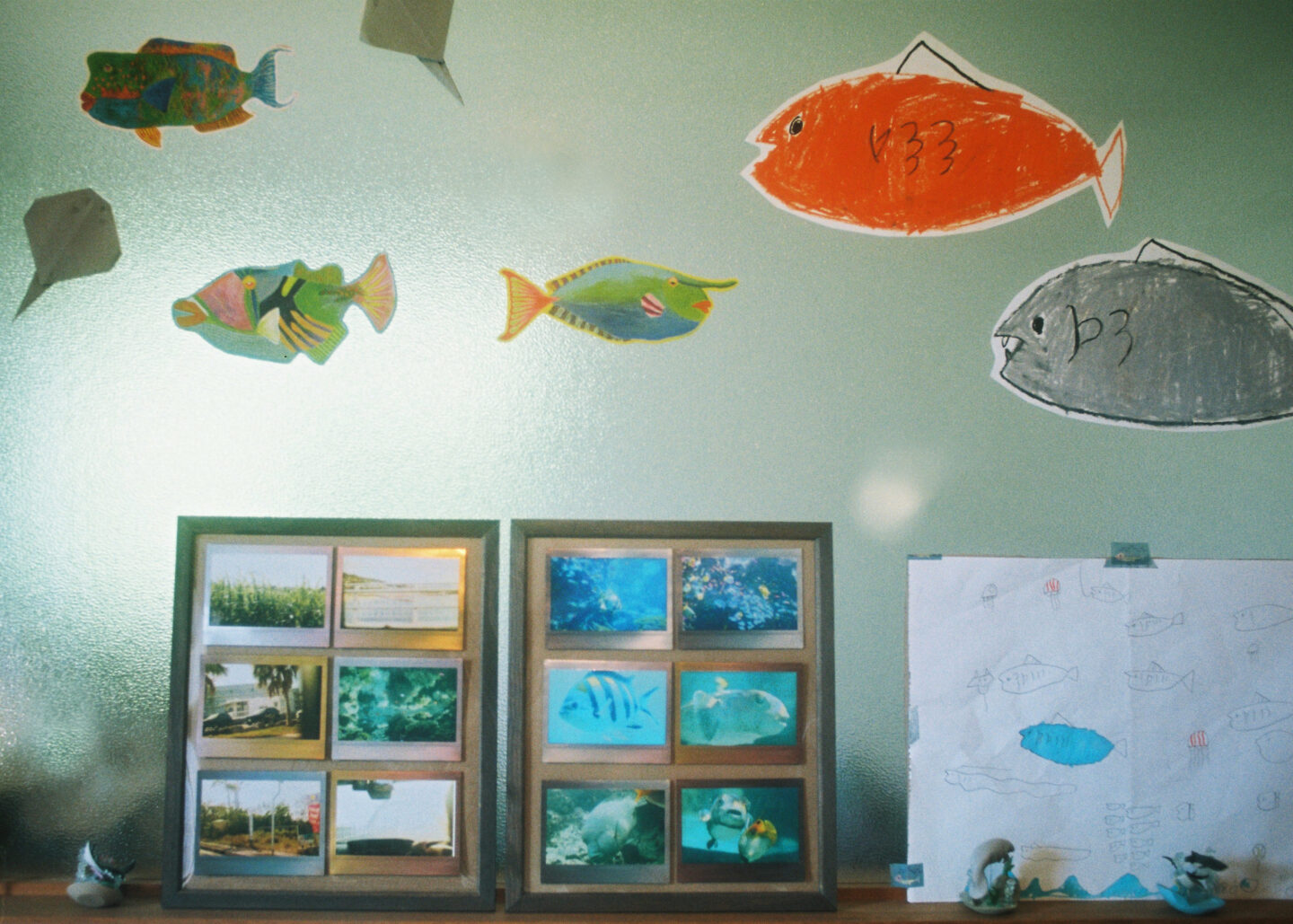 ↑これは、息子が撮影した水族館と旅の記録をプリントして飾ったもの。自分が撮った写真のプリントに大興奮だった^^
