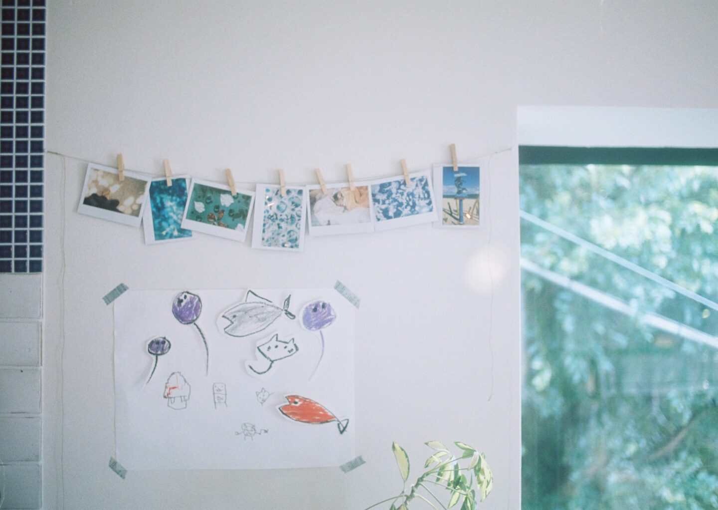 このチェキプリントなら家にも馴染みやすそう。ほら、木の洗濯ばさみで簡単に。