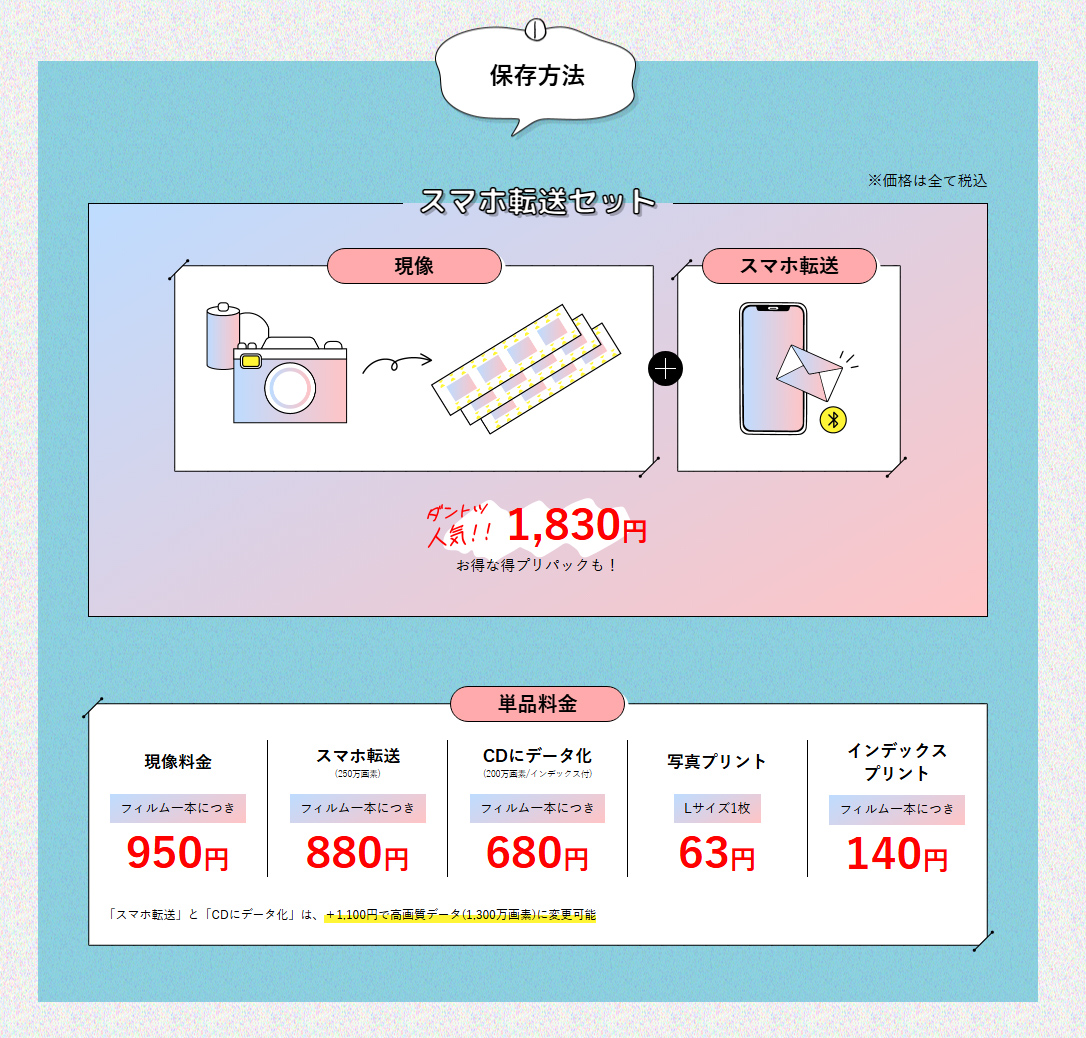 写ルンですのフィルム現像に関する詳細はリンク先をご覧ください。