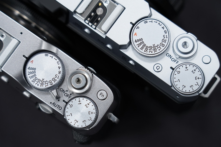 トップカバーもエッジが立ったシャープなデザインへと変更されクラシカルな印象を強めました。レンズ一体型のコンパクトカメラ「X100V」を参考にしたとのことで、素材の違い(X-E4:マグネシウム合金、X100V:アルミニウム)はあれど色味は揃えられており、金属の質感が美しい所有欲を掻き立てるデザインに仕上がっています。