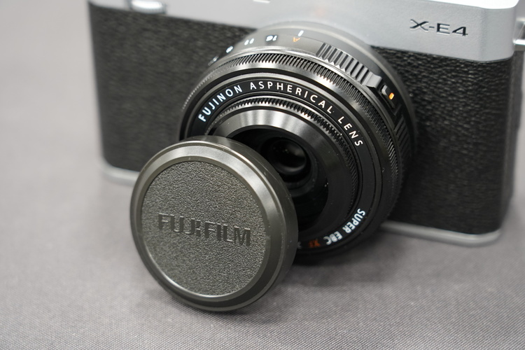 「X-E4に付けっぱなしにしておきたい、写真が撮れるボディキャップくらいに考えていい」と上野氏が太鼓判を押すほどX-E4との組み合わせに最適。ドーム型のレンズフードも常時付けておけるよう、フードの上から被せるキャップも付属します。オールドレンズに付いてくるような柔らかめのプラスチックキャップとなっており、レトロ/クラシック感を引き立てるようこだわって作られたそうです。