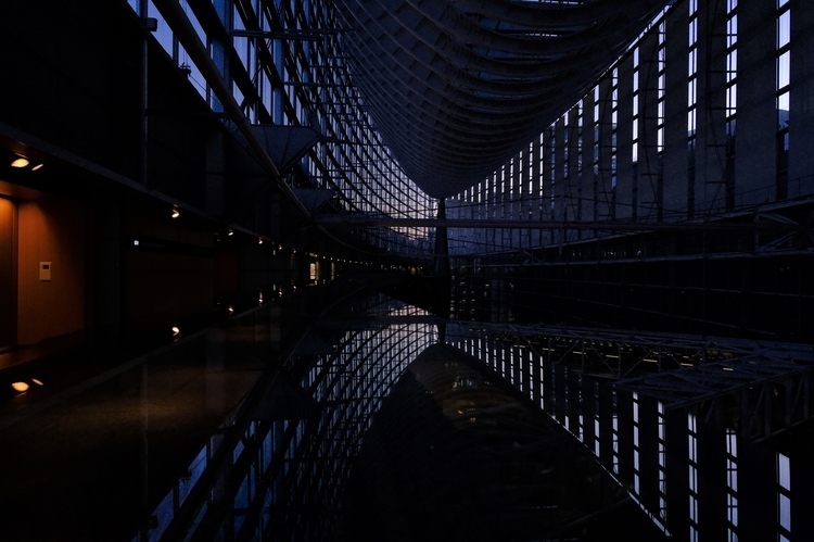 広角端15mmの汎用性は高く、35㎜換算で約23㎜の広角レンズなので、パースを活かした構図で狙いたい建物・空間などでも描写力の高さを感じます。薄暮時間の空をカラークロームブルーで引き立てています。