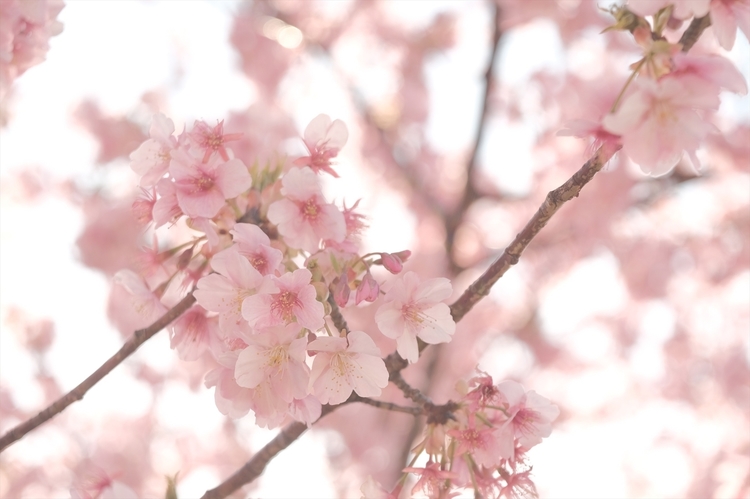 早咲きの河津桜は、逆光によるフレアで優しく光が回り、柔らかく春らしい雰囲気に。クラシッククロームで色を抑えてみました。