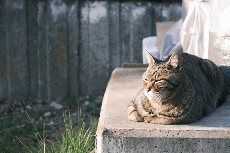 夕日を浴びてまどろむネコ。町中でのスナップ撮影には距離感もちょうど良く、クラシックネガを選べばフィルムライクな懐かしい雰囲気と味わいを表現可能。