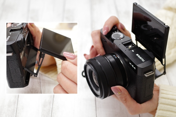 X-E3が発売された時点で一番残念に感じていたのが、チルトモニターがなかったことでした。その声に応えるべく、また昨今の撮影環境、動体・動画需要に応じた180°チルト式モニターは、3.0型TFTカラー液晶モニター・約162万ドット。