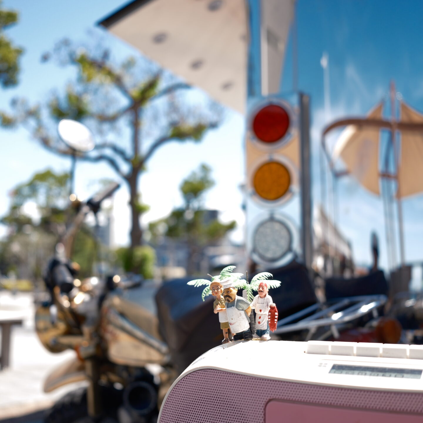 写真のアスペクト比(縦横の比率)の基本は3:2ですが、16:9、5:4、4:3、1:1、に変えることもできます。港の歩道から見下ろした大きなオブジェを中心に1:1のスクエアで存在感アップ。人と比べてみるとスケール感がわかります。レンズの右上あたりあるにコントロールレバーを長引きすると簡単に切り替えられて便利でした。