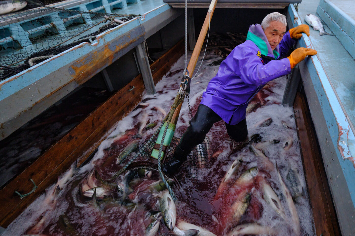 帰港して荷下ろしを待つ約3000匹の秋サケ。「X-H2」の高精細な描画力はリアルな瞬間を至高に表現してくれます。